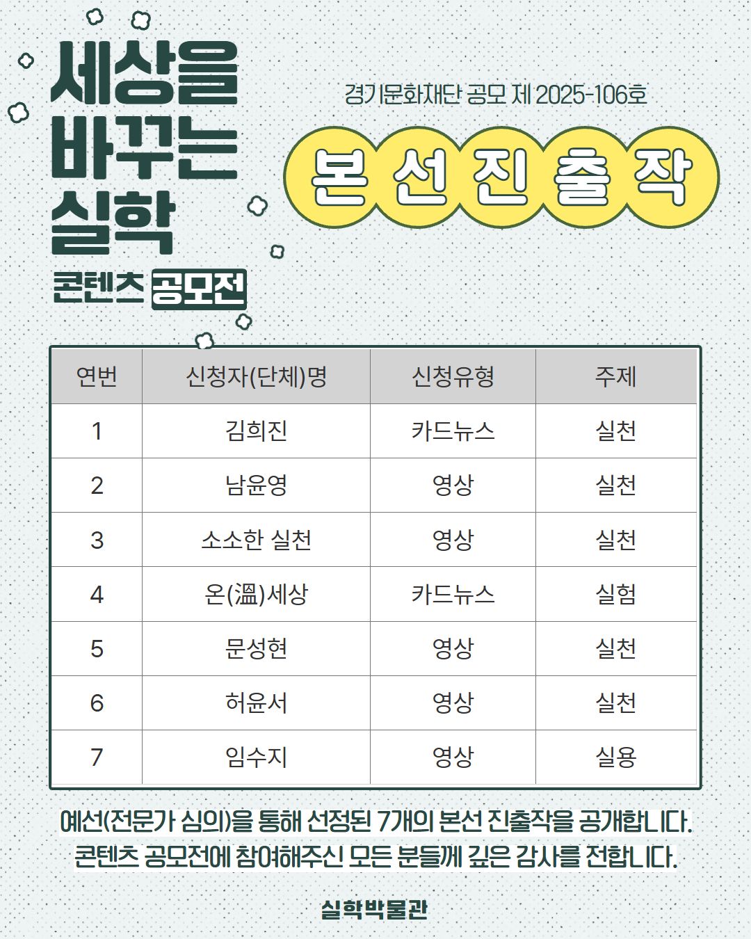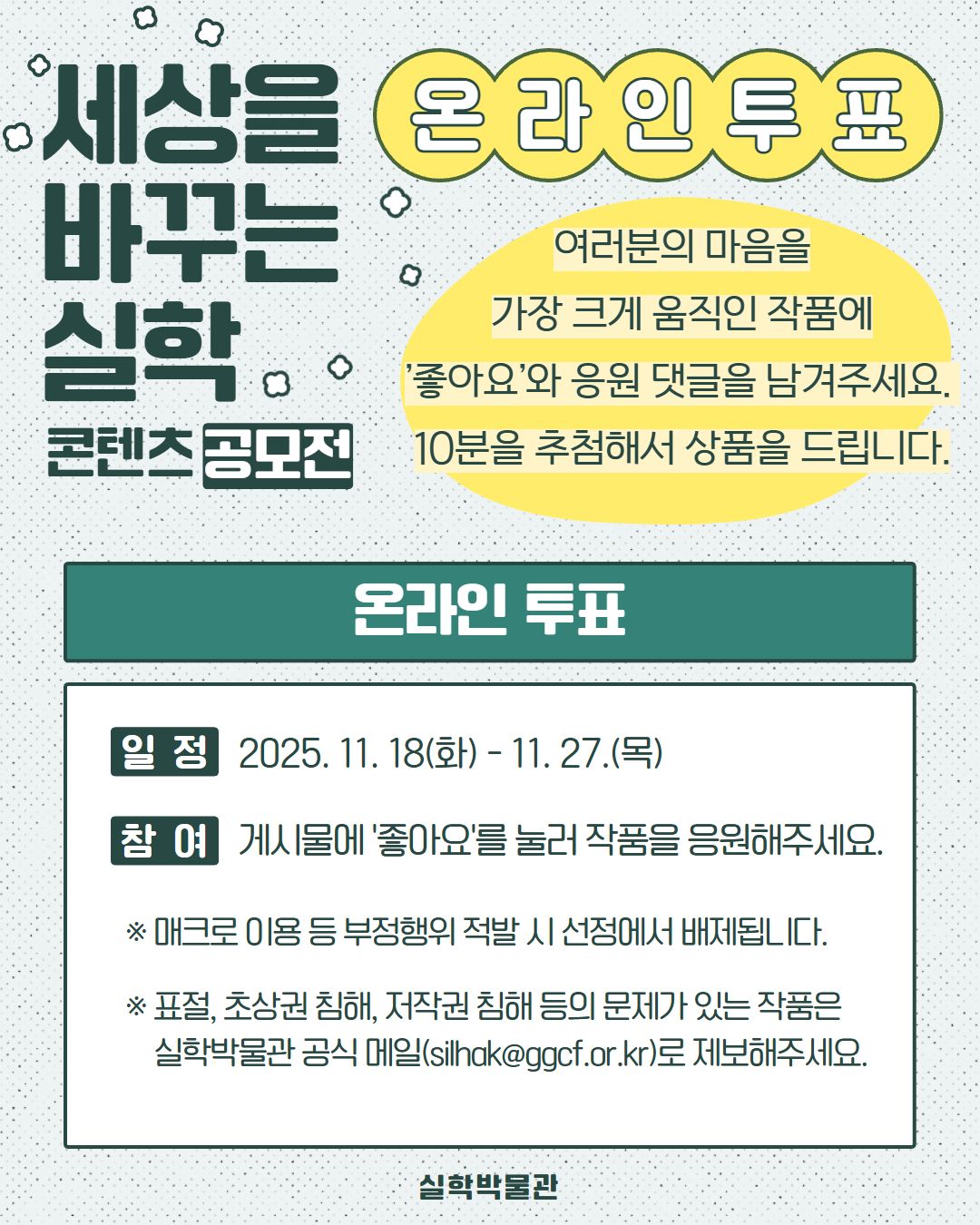 2025 <세상을 바꾸는 실학> 콘텐츠 공모전 본선 진출작 공개 및 온라인 투표 안내