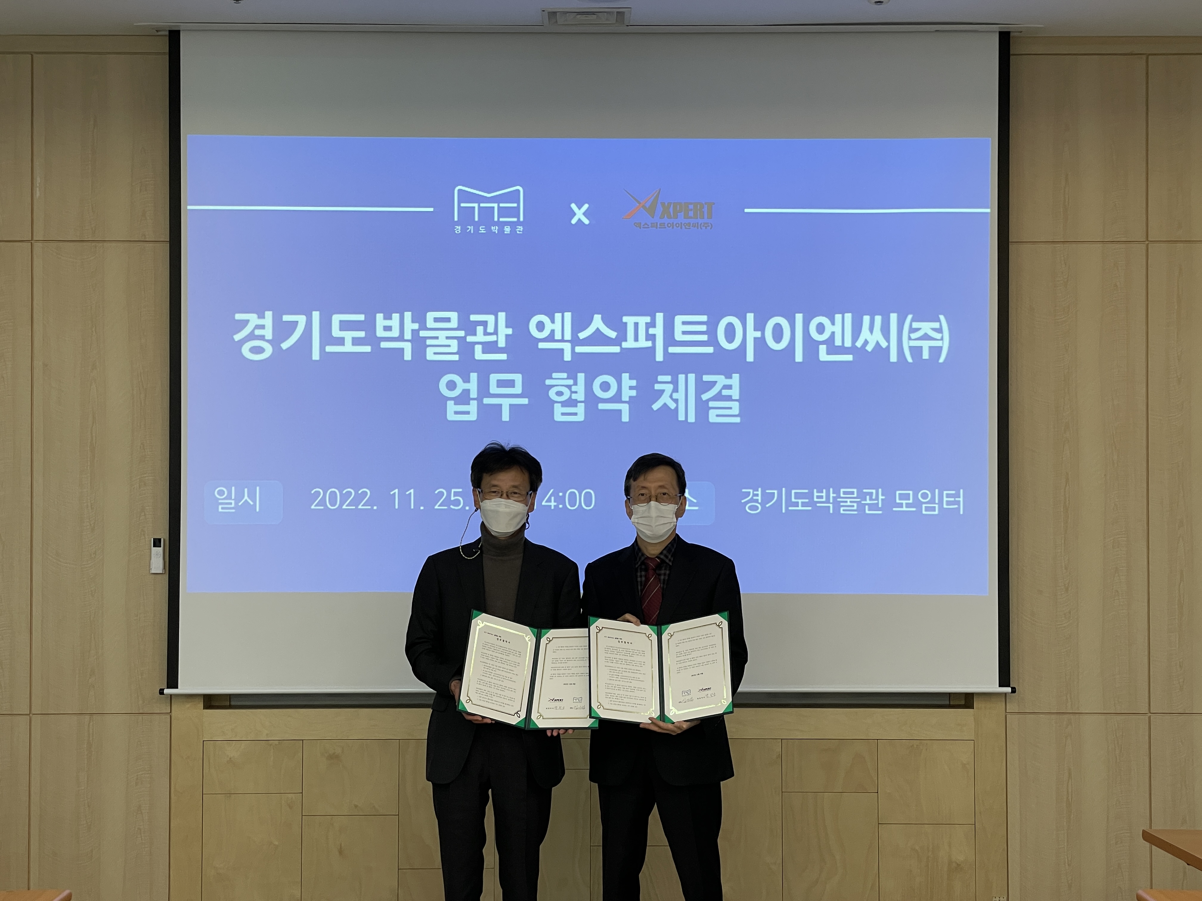 경기문화재단 경기도박물관(관장 김기섭)은 11월 25일(금) 엑스퍼트아이엔씨 주식회사와 교류협력을 위한 업무 협약을 체결했다. 양 기관은 정보통신 서비스 확산 방안 마련을 공동 추진하고 관람객 경험 확대와 접근성 향상을 위한 방법을 지속적으로 연구하는 것을 목표로 3개년 업무협약을 맺었다.