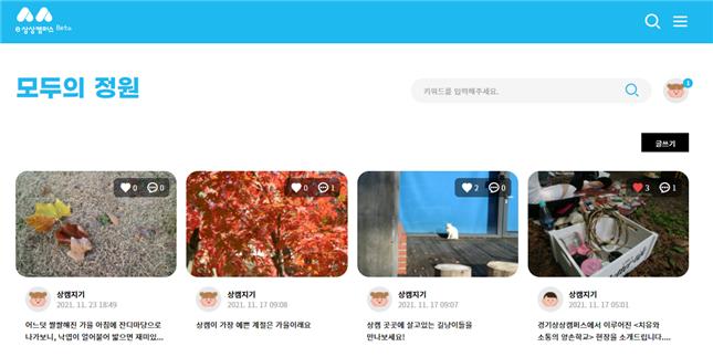 이번 오픈을 맞이한 ‘모두의 정원’은 소통형 커뮤니티 기능으로 방문자는 로그인 후 경기상상캠퍼스를 방문했던 경험을 되살려 글 작성, 사진 공유, 프로그램 후기 등을 작성할 수 있다. 기존 상상캠퍼스 입주단체 및 동호회, 방문객이 온라인에서도 서로 연결되는 느낌을 받을 수 있는 소통의 장으로서, 향후 e상상캠퍼스의 핵심 역할을 담당할 예정이다.