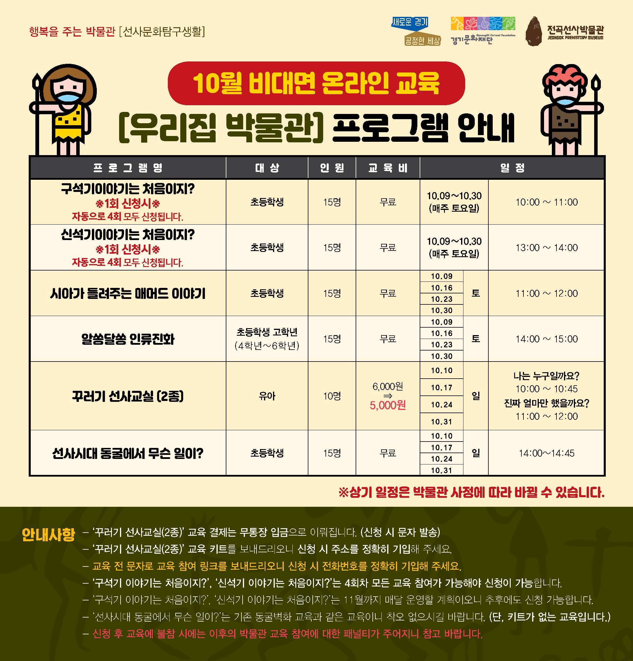 | 전곡선사박물관 | 교육 | 10월 온라인 비대면 교육 <우리집 박물관> |