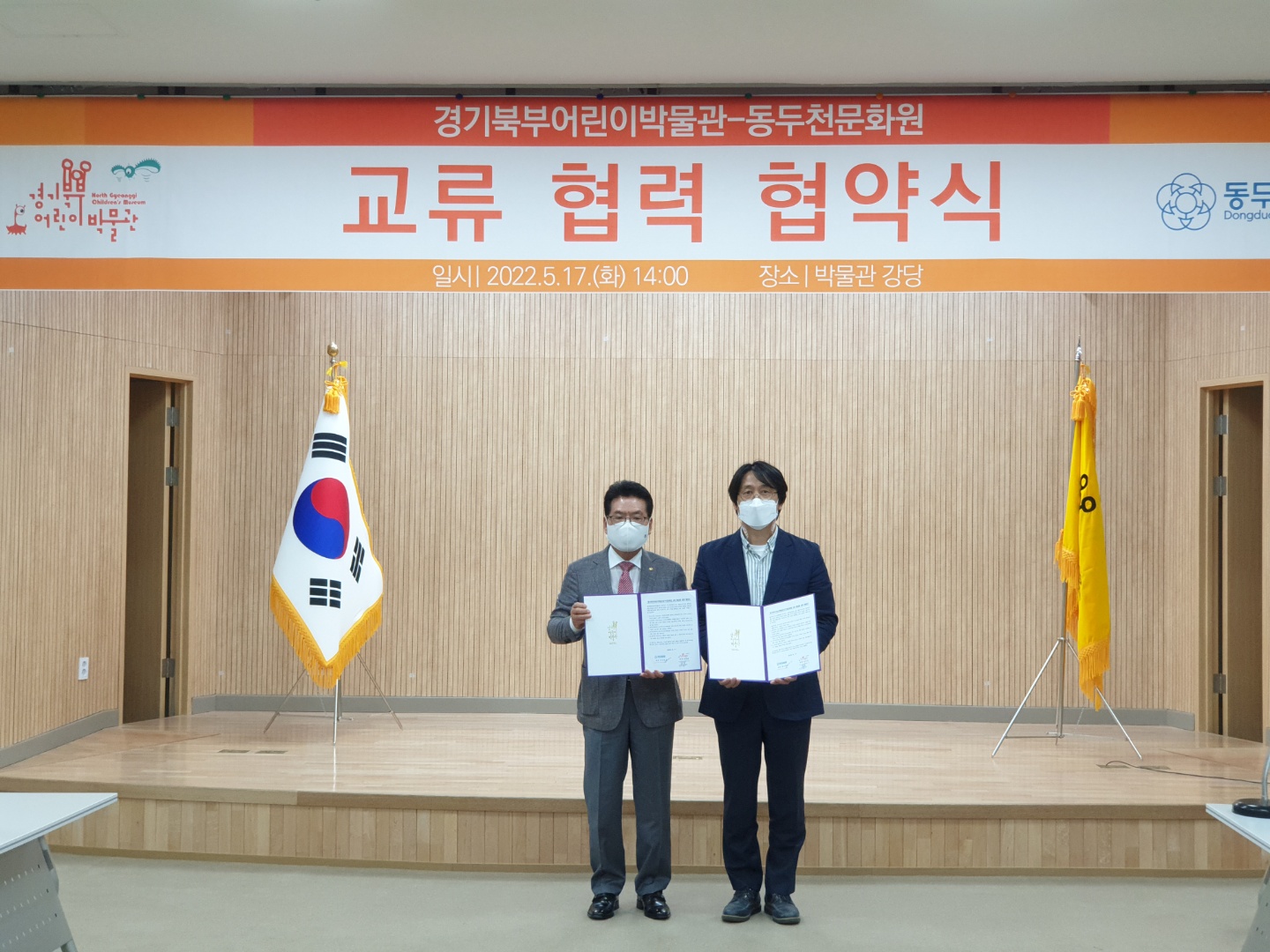 경기문화재단 경기북부어린이박물관(관장 김종길)과 동두천시 동두천문화원(원장 정경철)은 5.17(화) 경기북부어린이박물관 강당에서 교류 활성화를 위한 협력 협약을 체결한다.