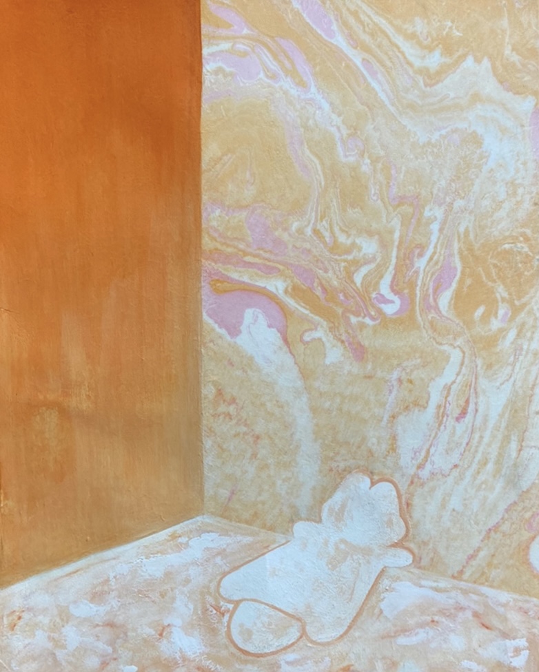 | 사진 5. (1회 출품작) 조정은_위로의 꿈(4pcs 중 일부)_27.3x22cm_장지에 호분과 담채_2021 | 사진 6. (1회 출품작) 정주희_movement B8_60x60cm_Acrylic on canvas_2022 |
