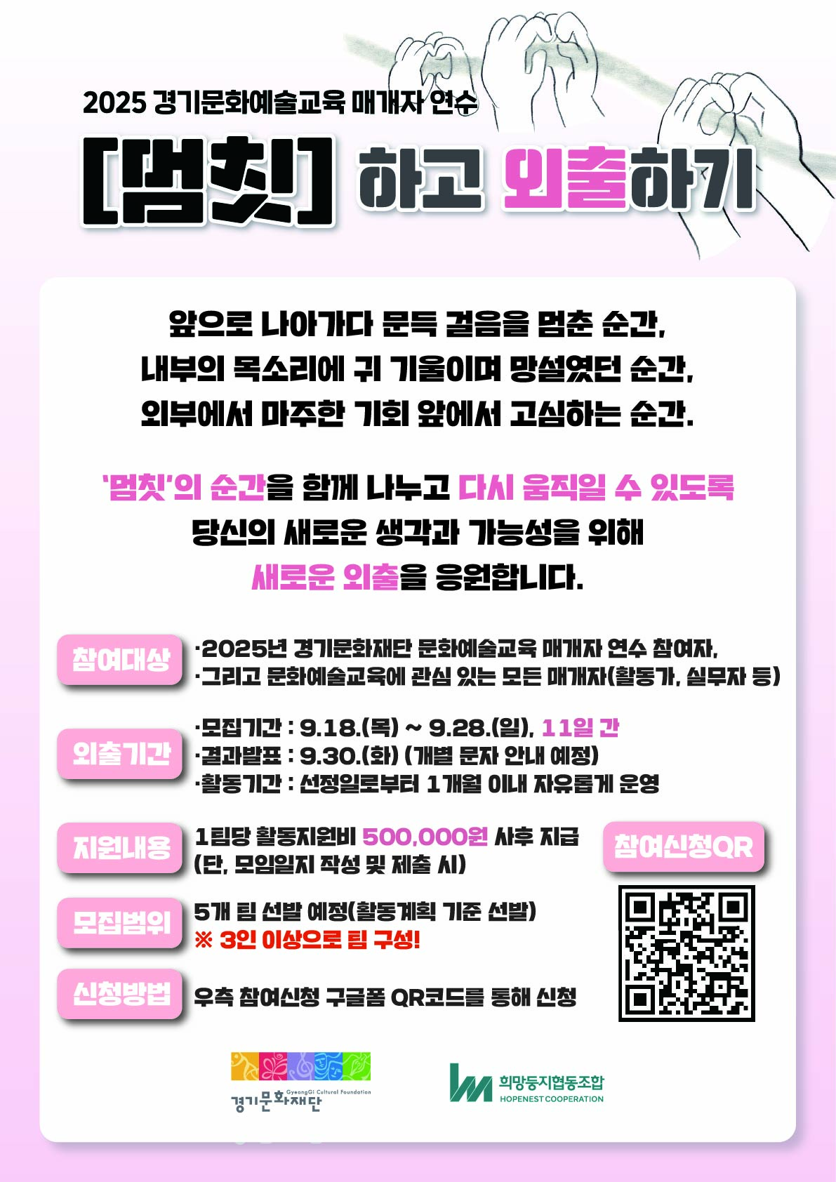 ◾ 모집대상: ① 2025년 [멈칫] 연수 참여자 또는 ② 문화예술교육에 관심이 있는 누구나