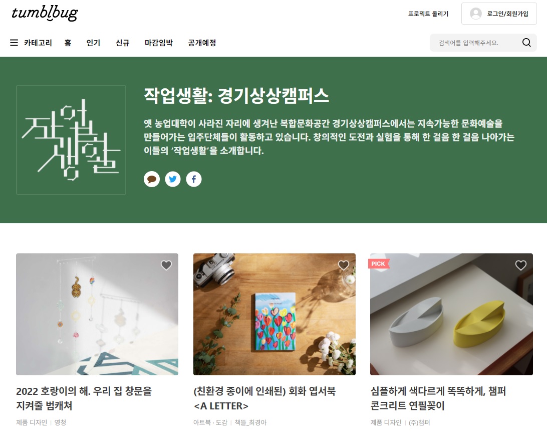 ▶ 2021 경기상상캠퍼스 입주단체 ‘달고리, 탐조책방 등 10팀’ 텀블벅과 연계하여 크라우드펀딩 기획전 진행