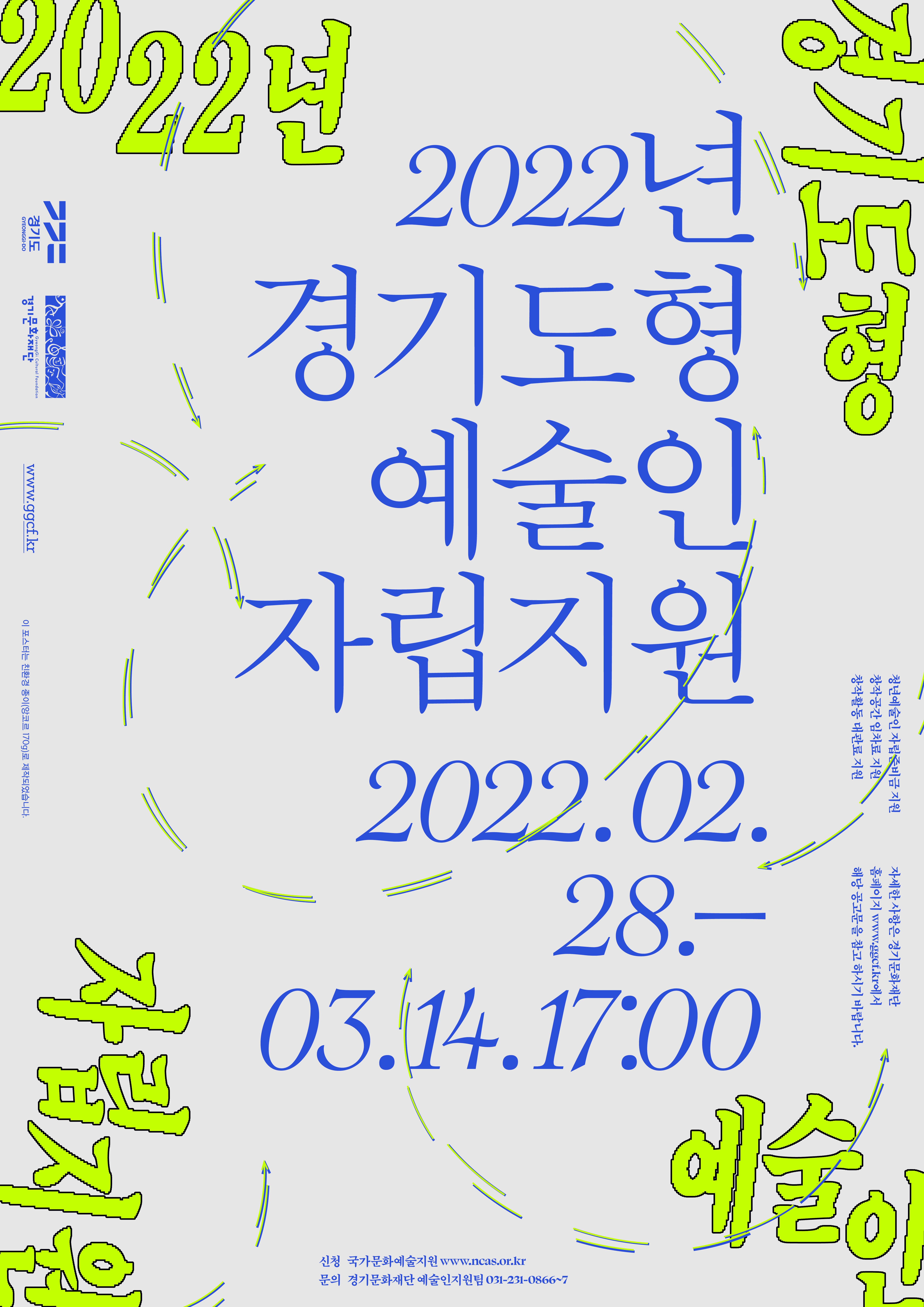 자세한 내용은 경기문화재단 홈페이지(www.ggcf.kr)에서 확인할 수 있으며, 경기문화재단 예술인지원팀(031-231-0866~7)으로 문의 가능하다.