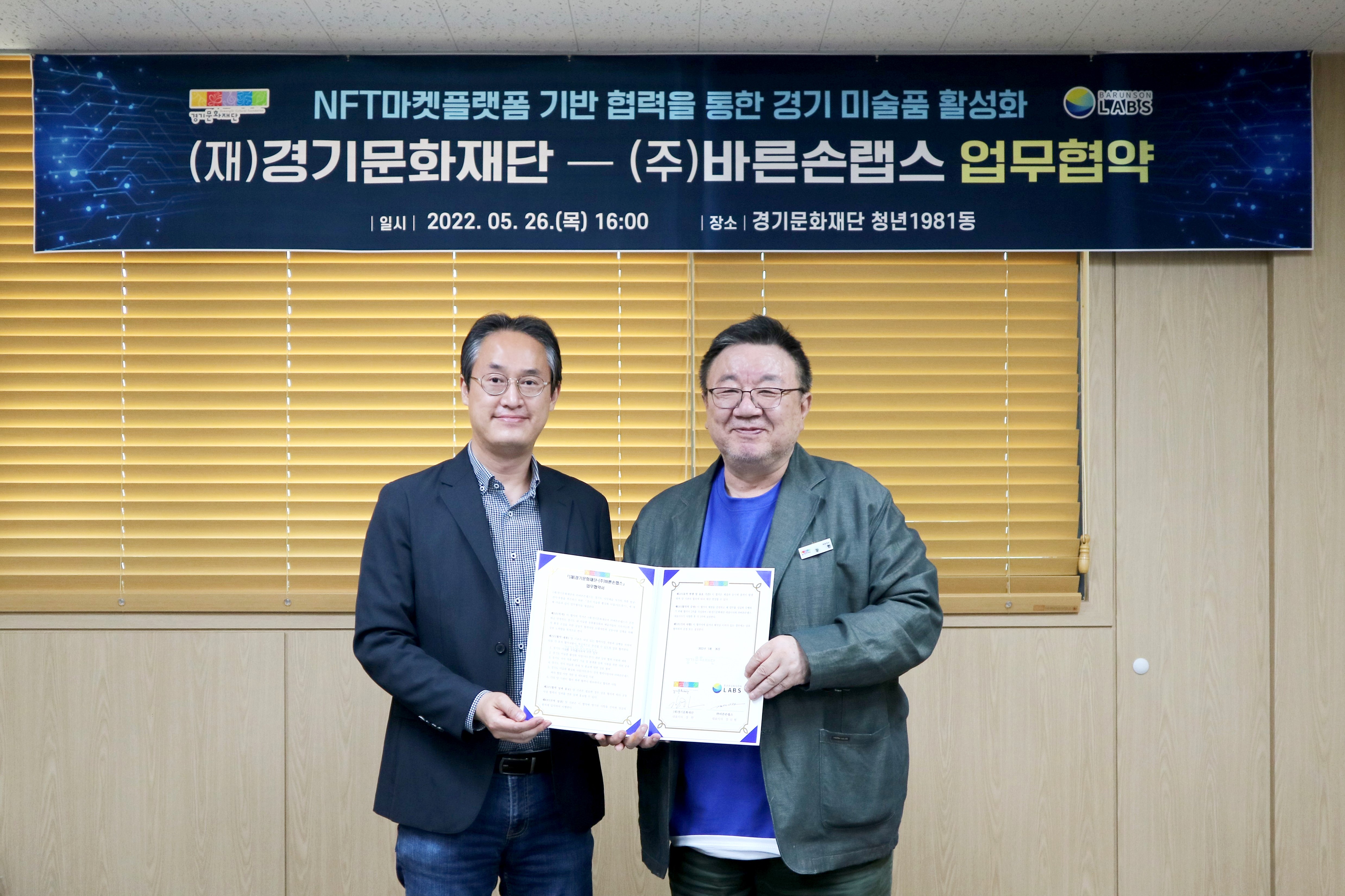 경기문화재단, 바른손랩스와 경기 미술품 NFT 사업 협력 업무 협약 체결