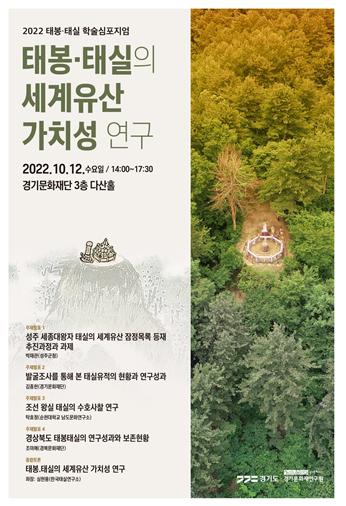 경기도와 경기문화재연구원은 2020년 경기도 내 태봉·태실의 실태조사를 시작으로 2021년 광주 원당리 성종왕녀 태실과 2022년 연천 유촌리 화덕옹주 태실을 학술 발굴조사하여 태실 조성 방법과 다양한 형태의 태함을 확인하는 성과를 거두었다. 이에 그동안 도내에서 이루어진 태봉⦁태실의 학술조사 성과와 함께 다른 지역의 연구사례를 톺아보면서 세계유산의 가치성을 짚어보는 자리를 마련하였다.