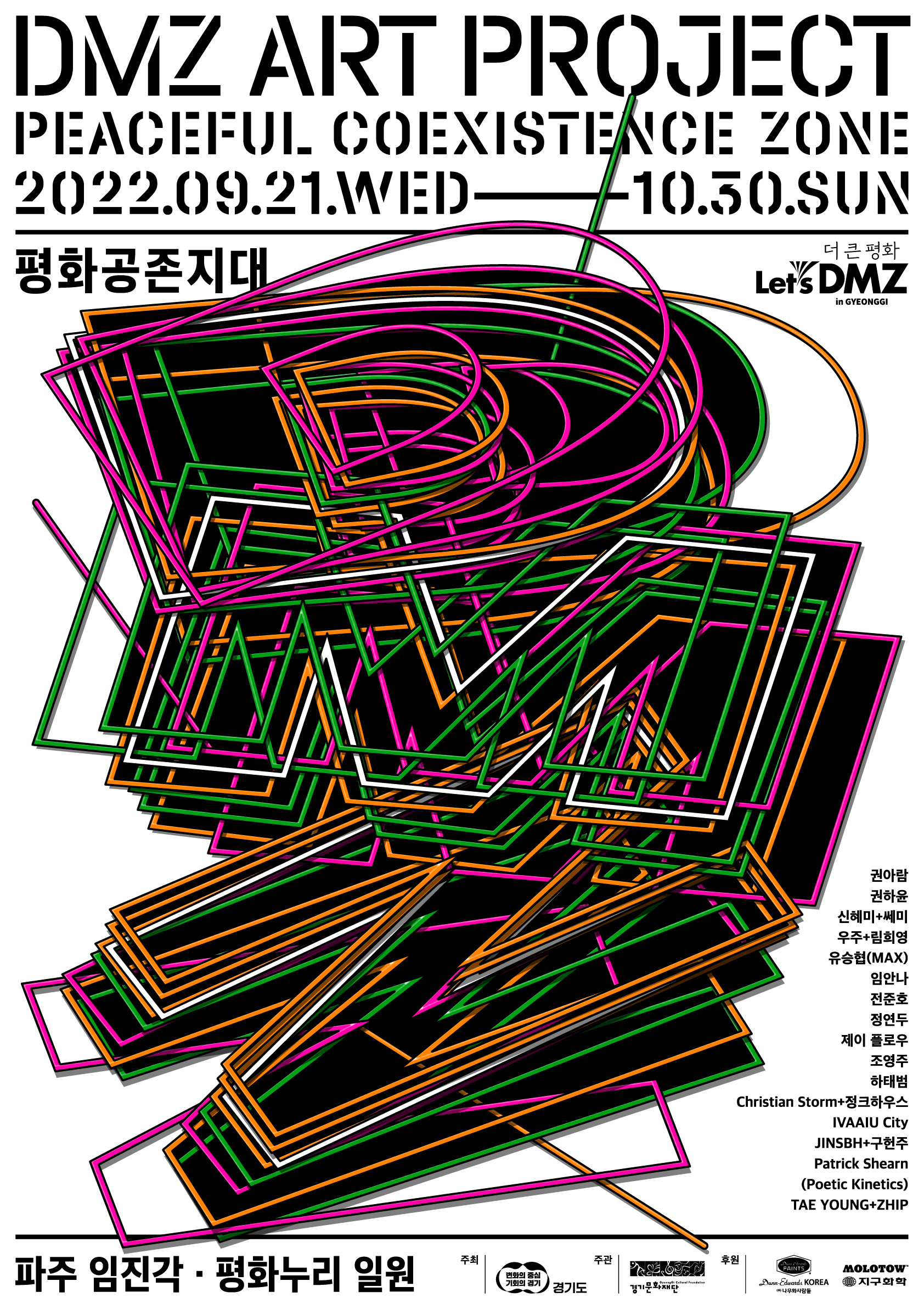 경기도와 경기문화재단은 ‘더 큰 평화’ 실현을 위한 예술 전시행사인 〈DMZ 아트프로젝트_평화공존지대〉가 오는 10월 30일까지 파주시 임진각 평화누리 일원과 임진각 건물 특별전시장에서 열린다고 밝혔다.