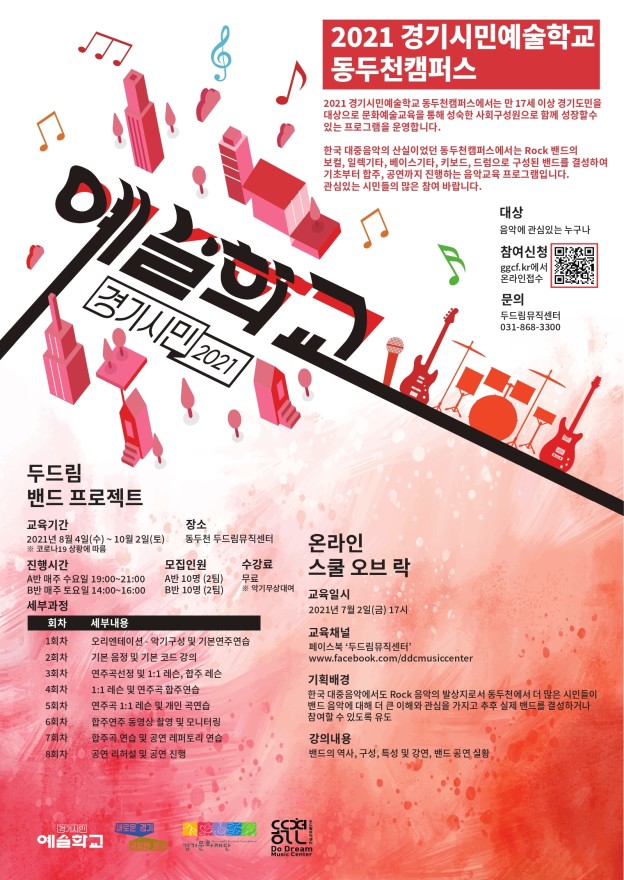 2021 경기시민예술학교 동두천캠퍼스에서는 두드림 밴드 프로젝트를 진행합니다.