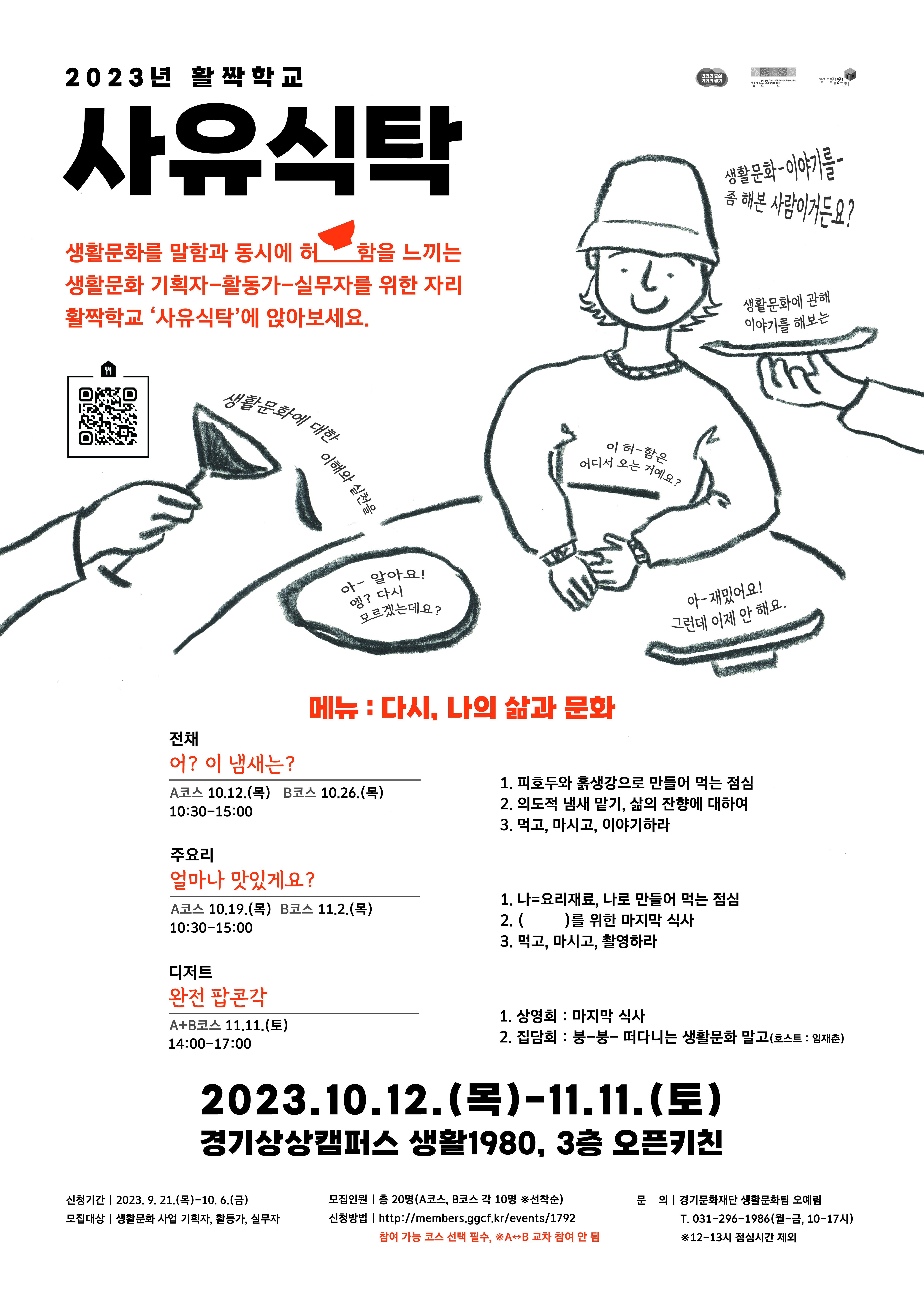□ 모집대상 :생활문화 사업 기획자, 활동가, 실무자 총 20명(A코스, B코스 각 10명 ※선착순)