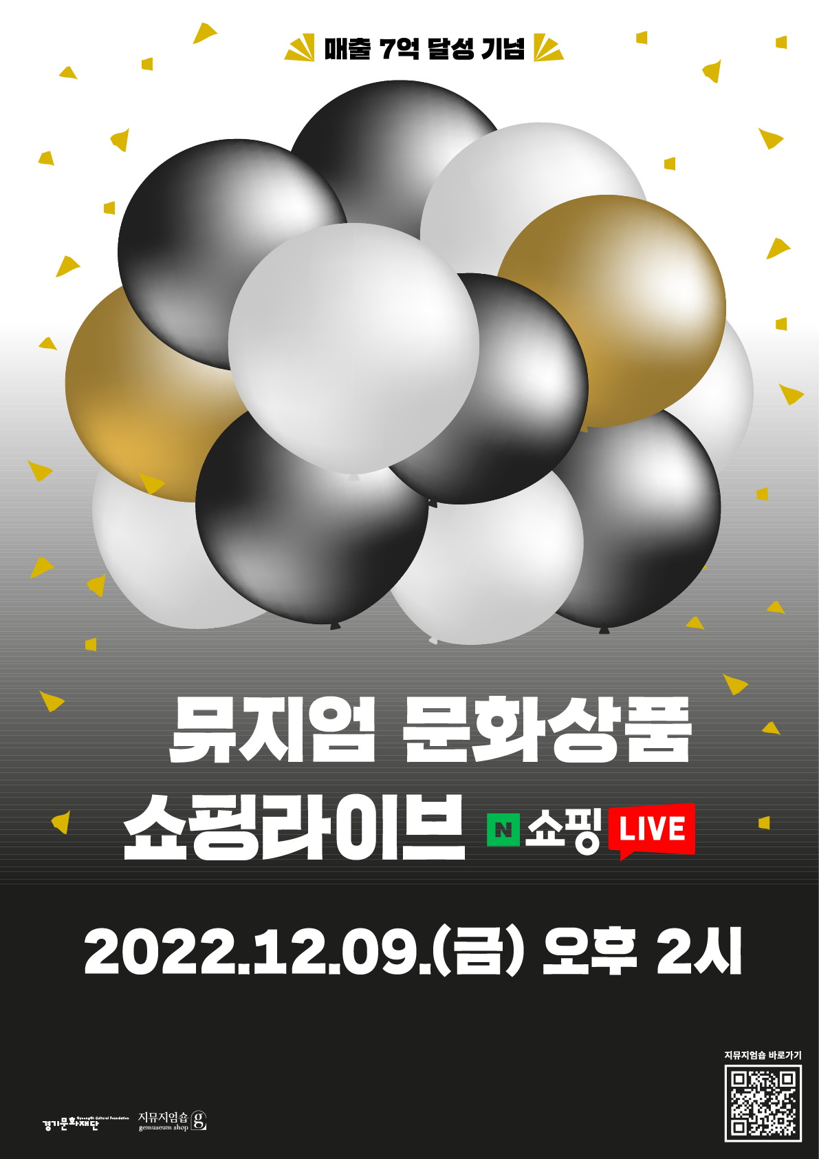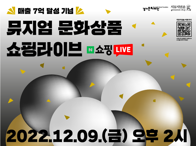경기문화재단 뮤지엄숍이 매출 7억 달성을 기념하여 네이버 쇼핑라이브를 진행합니다.
