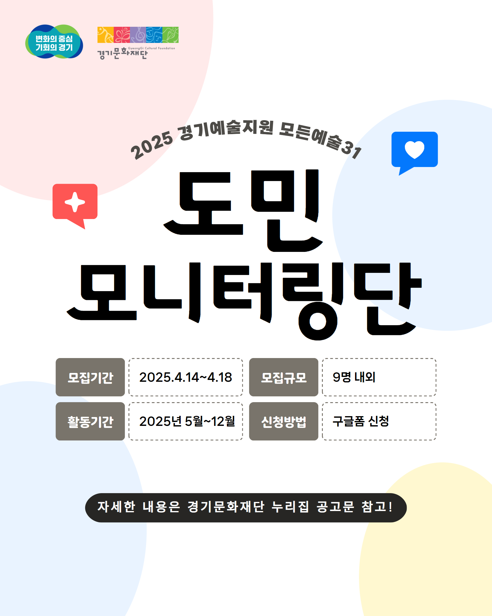 2025년 경기예술지원 모든예술31 도민모니터링단 모집 공고