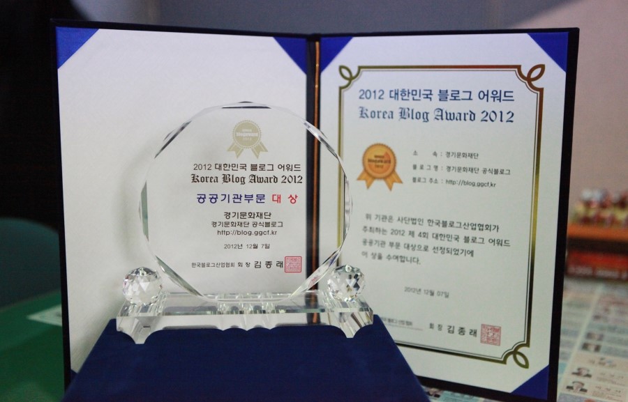 2012 대한민국 블로그어워드 공공기관부문 대상 경기문화재단